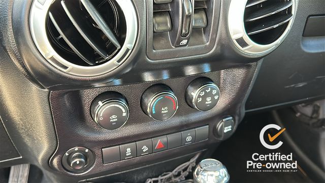 18" x 7.5" Polished Satin Carbon Wheels, 3.21 Rear Axle Ratio, 4-Wheel Disc Brakes, 8 Speakers, ABS brakes, Air Conditioning, Alloy wheels, AM/FM radio: SiriusXM, Audio Jack Input for Mobile Devices, Auto-dimming Rear-View mirror, Black 3-Piece Hard Top, Body Color Appliques Front Bumper, Body Color Appliques Rear Bumper, Body Color/Accent Color Grille, Brake assist, CD player, Cloth Seats w/Adjustable Head Restraints, Compass, Connectivity Group, Delete Sunrider Soft Top, Driver door bin, Driver Height Adjuster Seat, Driver vanity mirror, Dual front impact airbags, Electronic Stability Control, Freedom Panel Storage Bag, Front anti-roll bar, Front Bucket Seats, Front Center Armrest w/Storage, Front fog lights, Front reading lights, Front Seat Back Map Pockets, Fully automatic headlights, Heated door mirrors, Heavy Duty Suspension w/Gas Shocks, Illuminated entry, Integrated roll-over protection, Leather steering wheel, Low tire pressure warning, Manufacturer's Statement of Origin, Occupant sensing airbag, Outside temperature display, Panic alarm, Passenger door bin, Passenger vanity mirror, Power door mirrors, Power steering, Power windows, Quick Order Package 24G, R1234YF A/C Refrigerant, Radio data system, Radio: 130, Rear anti-roll bar, Rear Window Defroster, Rear Window Wiper/Washer, Remote keyless entry, Remote Start System, Security system, Speed control, Split folding rear seat, Steering wheel mounted audio controls, Sunrider Soft Top, Tachometer, Tilt steering wheel, Tire Pressure Monitoring Display, Traction control, Trip computer, Uconnect Voice Command w/Bluetooth, Variably intermittent wipers, Vehicle Information Center.