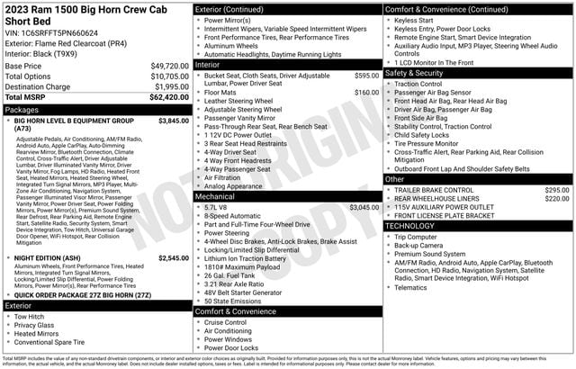 The 2023 Ram 1500 Big Horn/Lone Star delivers the perfect balance of power, technology, and bold styling. Equipped with the Night Edition, Big Horn Level B Package, 12" touchscreen navigation, and eTorque system, this truck stands out with both capability and premium features.
