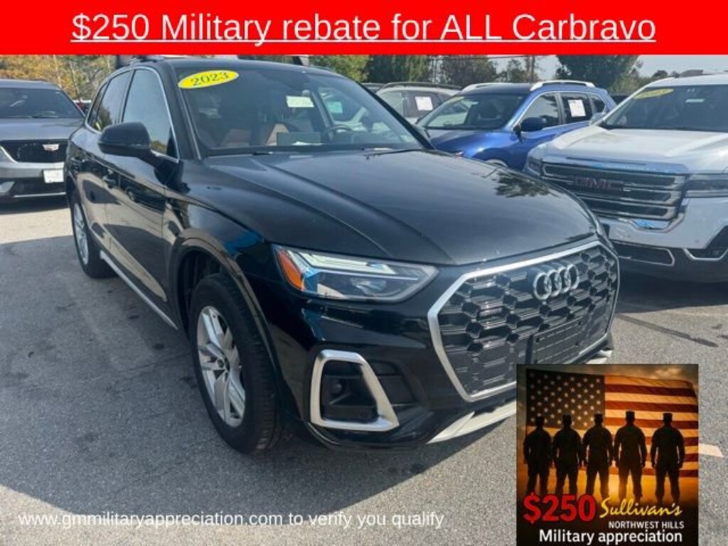 2023 Audi Q5 45 S line Premium quattro**CAR BRAVO CERTIFIED **, **Clean Carfax**, **All Wheel Drive**, Bluetooth Phone/Audio, 4-Wheel Disc Brakes, 5.302 Axle Ratio, ABS brakes, Air Conditioning, Alloy wheels, Audi Advanced Key, Auto-Dimming Power Folding Exterior Mirrors, Automatic temperature control, Brake assist, Convenience Package, Delay-off headlights, Driver Seat Memory, Dual front impact airbags, Dual front side impact airbags, Electronic Stability Control, Emergency communication system: Audi connect CARE, Four wheel independent suspension, Front anti-roll bar, Front Bucket Seats, Front Center Armrest, Front dual zone A/C, Front fog lights, Heated 8-Way Power Front Bucket Seats, Heated front seats, Heated Steering Wheel, Leather Seating Surfaces, Low tire pressure warning, Occupant sensing airbag, Overhead airbag, Panic alarm, Panoramic Sunroof, Power driver seat, Power Liftgate, Power passenger seat, Power steering, Power windows, Radio: Audi Sound System, Rain sensing wipers, Rear air conditioning, Rear anti-roll bar, Rear fog lights, Rear window defroster, Rear window wiper, Remote keyless entry, SiriusXM w/360L, Speed-Sensitive Wipers, Split folding rear seat, Steering wheel mounted audio controls, Variably intermittent wipers.Say Yes to Sullivan! Our Dealer Conveyance fee is only $479!KBB Fair Market Range High: $30,613