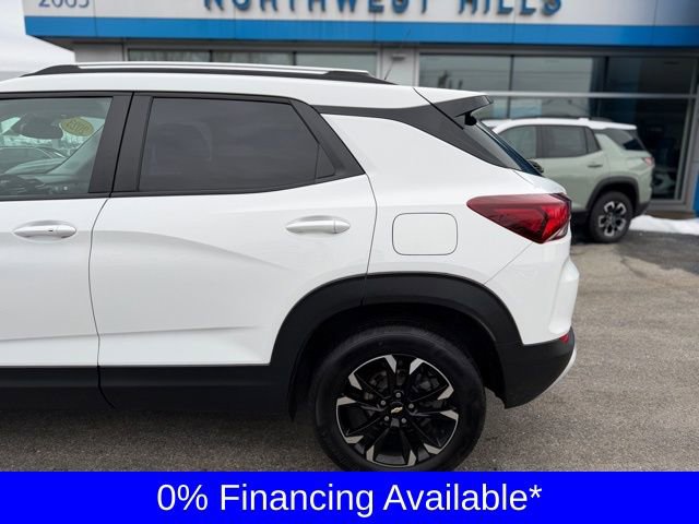 2023 Chevrolet TrailBlazer LTIf youâre looking for a sporty, efficient SUV with strong tech, comfort upgrades, and modern driver-assist safety, this 2023 Chevrolet TrailBlazer LT is a great fit. Equipped with the Convenience Package and Driver Confidence Package, it delivers the features people want most in a compact SUV.PERFORMANCE & HANDLING 4-Wheel Disc Brakes ABS Brakes Electronic Stability Control Traction Control Brake Assist Front Wheel Independent Suspension Ride & Handling Suspension 17 High Gloss Black Machined Aluminum WheelsEXTERIOR FEATURES Fully Automatic Headlights Auto High-Beam Headlights Front Fog Lights Heated Power Door Mirrors Body-Color Bumpers Rear Spoiler Exterior Rear Vision CameraINTERIOR & COMFORT Cloth Seat Trim 8-Way Power Driver Seat 2-Way Power Driver Lumbar Adjuster Heated Driver & Front Passenger Seats Single-Zone Automatic Climate Control Cabin Humidity Sensor Inside Rear-View Auto-Dimming Mirror Flat-Folding Front Passenger Seatback Split Folding Rear Seat Illuminated Entry Remote Keyless Entry Power Windows Rear Window Defroster 120-Volt Power OutletTECHNOLOGY Chevrolet Infotainment 3 System 8 Diagonal Color Touchscreen Display Wireless Apple CarPlay & Android Auto SiriusXM Radio 6-Speaker Audio System with Amplifier Steering Wheel Mounted Audio Controls 1 Type-A & 1 Type-C USB Charging PortsSAFETY & DRIVER ASSISTANCE Lane Change Alert with Side Blind Zone Alert Rear Cross Traffic Alert Driver Confidence Package Multiple Airbags Including Front, Side, Knee & Overhead Low Tire Pressure Warning OnStar and Chevrolet Connected Services CapableCARBRAVO CERTIFIEDThis vehicle includes the CarBravo Limited Bumper-to-Bumper Warranty:12 Months / 12,000 Miles of Coverage from date of purchaseNo extra charge126-Point Inspection completed24-Hour Roadside AssistanceCourtesy Transportation AvailableWarranty repairs include parts, labor, and towing if necessarySay Yes to Sullivan!Our Dealer Conveyance Fee is only $479.