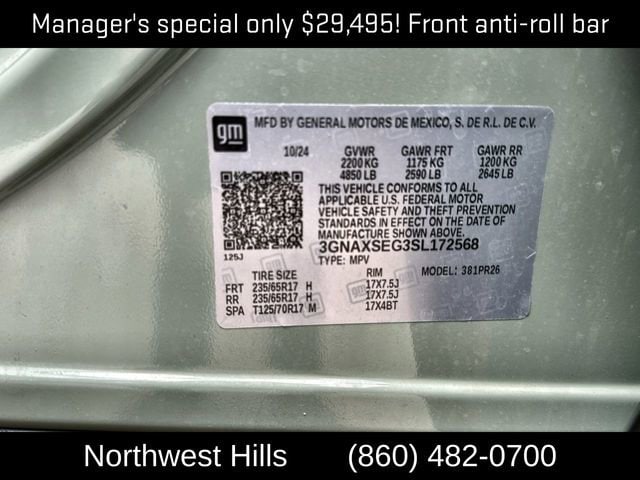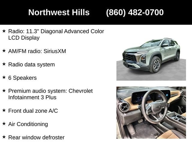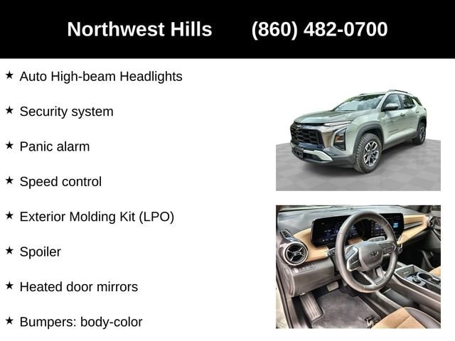 2025 Chevrolet Equinox ACTIV**CAR BRAVO CERTIFIED **, **Clean Carfax**, **All Wheel Drive**, Bluetooth Phone/Audio, **LOCALLY OWNED AND TRADED**, AWD, 2-Way Power Driver Lumbar Control Seat Adjuster, 3.47 Final Drive Axle Ratio, 4-Wheel Disc Brakes, 6 Speakers, ABS brakes, Air Conditioning, Alloy wheels, AM/FM radio: SiriusXM, Auto High-beam Headlights, Automatic temperature control, Brake assist, Bumpers: body-color, Cargo Mat, Compass, Delay-off headlights, Driver 8-Way Power Seat Adjuster, Driver door bin, Driver vanity mirror, Dual front impact airbags, Dual front side impact airbags, Electronic Stability Control, Emergency communication system: OnStar and Chevrolet connected services capable, Exterior Molding Kit (LPO), Four wheel independent suspension, Front anti-roll bar, Front Bucket Seats, Front Center Armrest, Front dual zone A/C, Front Passenger 4-Way Manual Seat Adjuster, Front reading lights, Fully automatic headlights, Garage door transmitter, Heated door mirrors, Heated Driver & Front Passenger Seats, Heated front seats, Heated steering wheel, Illuminated entry, Low tire pressure warning, Navigation System, Occupant sensing airbag, Outside temperature display, Overhead airbag, Overhead console, Panic alarm, Passenger door bin, Passenger vanity mirror, Power door mirrors, Power driver seat, Power Liftgate, Power steering, Power windows, Preferred Equipment Group KDZ, Premium audio system: Chevrolet Infotainment 3 Plus, Radio data system, Radio: 11.3 Diagonal Advanced Color LCD Display, Rain sensing wipers, Rear anti-roll bar, Rear reading lights, Rear seat center armrest, Rear window defroster, Rear window wiper, Remote keyless entry, Security system, SiriusXM, Speed control, Speed-sensing steering, Split folding rear seat, Spoiler, Steering wheel mounted audio controls, Sueded Microfiber Seat Trim, Tachometer, Telescoping steering wheel, Tilt steering wheel, Traction control, Trip computer, Universal Home Remote Non-Functional, Variably intermittent wipers, Vertical Cargo Net (LPO), Wheels: 17 Dark Android Machined-Face Aluminum.Say Yes to Sullivan! Our Dealer Conveyance fee is only $479!