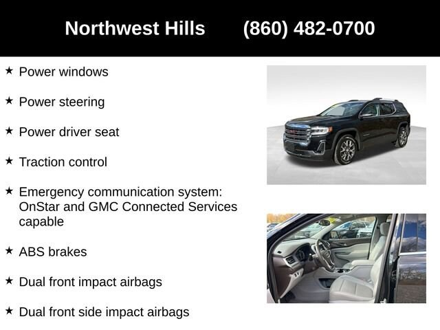 **CAR BRAVO CERTIFIED **, **Clean Carfax**, **All Wheel Drive**, Bluetooth Phone/Audio, Acadia SLT, 4D Sport Utility, 3.6L V6 SIDI, AWD, Ebony Twilight Metallic, Cocoa/Light Ash Gray Leather, 18 Aluminum Wheels, 3rd row seats: split-bench, 4-Way Manual Passenger Seat Adjuster, 4-Wheel Disc Brakes, 6-Passenger (2-2-2 Seating Configuration), 8 Speakers, 8-Way Power Driver Seat Adjuster, 8-Way Power Passenger Seat Adjuster, ABS brakes, Air Conditioning, AM/FM radio: SiriusXM with 360L, Auto High-beam Headlights, Automatic temperature control, Bose Premium 8-Speaker Audio System Feature, Brake assist, Dual front impact airbags, Dual front side impact airbags, Dual SkyScape 2-Panel Power Sunroof, Electronic Stability Control, Emergency communication system: OnStar and GMC Connected Services capable, Front anti-roll bar, Front Bucket Seats, Front Center Armrest, Front dual zone A/C, Heated & Ventilated Driver & Front Passenger Seats, Heated Driver & Front Passenger Seats, Heated front seats, Heated Rear Outboard Seating Positions, Knee airbag, Luxury Package, Memory Package, Navigation System, Not Equip w/Ventilated Seat Cushion Blower Motor, Occupant sensing airbag, Panic alarm, Perforated Leather-Appointed Seat Trim, Power Driver Lumbar Control Seat Adjuster, Power driver seat, Power Liftgate, Power Passenger Lumbar Control Seat Adjuster, Power steering, Power Tilt & Telescopic Steering Column, Power windows, Power-Adjustable Body-Color Outside Heated Mirrors, Premium audio system: GMC Infotainment System, Radio data system, Radio: AM/FM 8 Diagonal Multi-Touch Navigation, Rear air conditioning, Rear window defroster, Rear window wiper, Remote keyless entry, Security system, Speed control, Steering wheel mounted audio controls, Traction control, Variably intermittent wipers, Wireless Apple CarPlay/Wireless Android Auto.