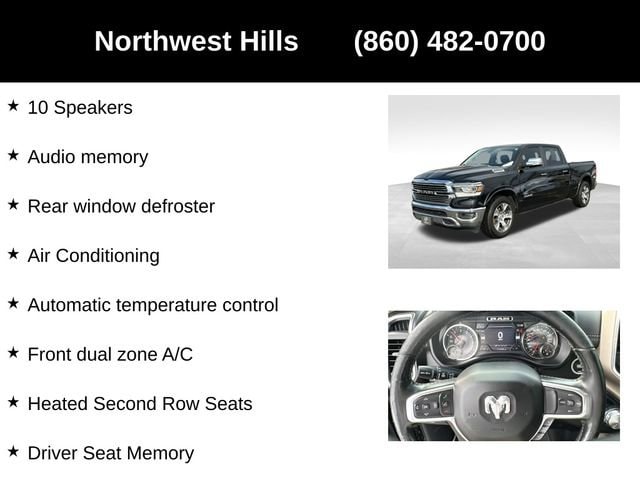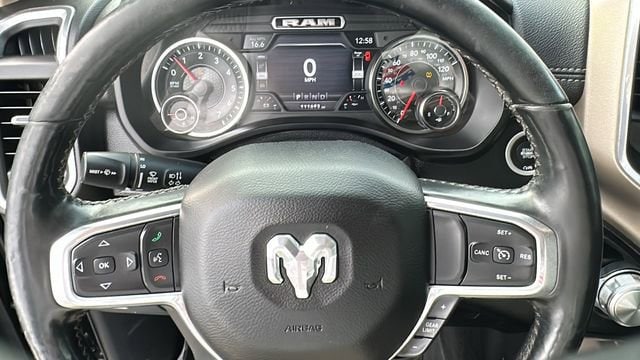 **CAR BRAVO CERTIFIED **, #1 Seat Foam Cushion, 1-Yr SiriusXM Guardian Trial, 10 Speakers, 12 Touchscreen Display, 3 Rear Seat Head Restraints, 3.21 Rear Axle Ratio, 4 Way Front Headrests, 4-Wheel Disc Brakes, 48V Belt Starter Generator, 5-Year SiriusXM Traffic Service, 5-Year SiriusXM Travel Link Service, 8.4 Touchscreen Display, ABS brakes, Adjustable pedals, Air Conditioning, Alloy wheels, AM/FM radio: SiriusXM, Apple CarPlay, Apple CarPlay/Android Auto, Audio memory, Auto High Beam Headlamp Control, Auto-dimming door mirrors, Auto-dimming Rear-View mirror, Automatic temperature control, Blind Spot & Cross Path Detection, Brake assist, Bright Day Light Opening Moldings, Bumpers: chrome, Compass, Delay-off headlights, Disassociated Touchscreen Display, Driver door bin, Driver Seat Memory, Driver vanity mirror, Dual front impact airbags, Dual front side impact airbags, Electronic Stability Control, Foam Bottle Insert (Door Trim Panel), For Details, Visit DriveUconnect.com, Front anti-roll bar, Front Center Armrest w/Storage, Front dual zone A/C, Front fog lights, Front reading lights, Front Seat Back Map Pockets, Front wheel independent suspension, Fully automatic headlights, Garage door transmitter, Google Android Auto, GPS Antenna Input, GPS Navigation, harman/kardon 19 Speaker Premium Sound, HD Radio, Heated door mirrors, Heated Front Seats, Heated front seats, Heated Second Row Seats, Heated Steering Wheel, Heated steering wheel, Illuminated entry, Integrated Center Stack Radio, Laramie Level 2 Equipment Group, Leather steering wheel, Leather Trim 40/20/40 Bench Seat, Low tire pressure warning, Memory seat, No Satellite Coverage w/HI/AK/PR/VI/GU, Occupant sensing airbag, Outside temperature display, Overhead airbag, Overhead console, Panic alarm, ParkSense Front/Rear Park Assist w/Stop, ParkView Rear Back-Up Camera, Passenger door bin, Passenger vanity mirror, Pedal memory, Power 4-Way Driver Lumbar Adjust, Power 4-Way Passenger Lumbar Adjust, Power 8-Way Driver & Passenger Seats, Power door mirrors, Power driver seat, Power passenger seat, Power Running Boards, Power steering, Power windows, Quick Order Package 23H Laramie, Radio data system, Radio: Uconnect 12 w/Navigation, Radio: Uconnect 4 w/8.4 Display, Radio: Uconnect 4C Nav w/8.4 Display, Rain Sensitive Windshield Wipers, Rear 60/40 Folding Split Recline Seat, Rear anti-roll bar, Rear seat center armrest, Rear step bumper, Rear Underseat Compartment Storage, Rear window defroster, Remote keyless entry, Remote Tailgate Release, Security system, Single Disc Remote CD Player, SiriusXM Satellite Radio, SiriusXM Traffic Plus, SiriusXM Travel Link, SiriusXM w/360L, Speed control, Split folding rear seat, Steering wheel mounted audio controls, Tachometer, Tailgate Ajar Warning Lamp, Telescoping steering wheel, Tilt steering wheel, Traction control, Trip computer, Turn signal indicator mirrors, USB Host Flip, Variably intermittent wipers, Ventilated Front Seats, Ventilated front seats, Voltmeter, Wheels: 18 x 8 Aluminum Base Painted, Wheels: 20 x 9 Premium Paint/Polished, Wireless Charging Pad.